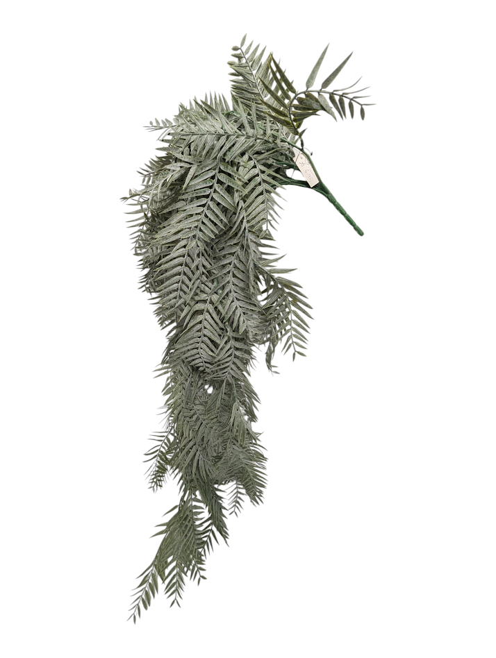 30" Artificial Frosted Fern Hanging Bush - Dusty Sage Green Trailing Greenery, Fortune Silks