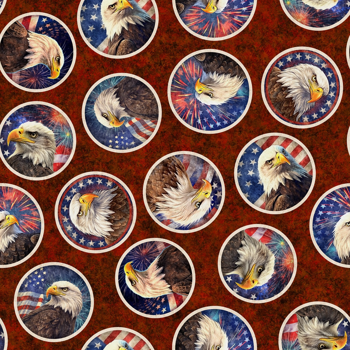 - Pattern: Bald eagle medallions with flags and fireworks