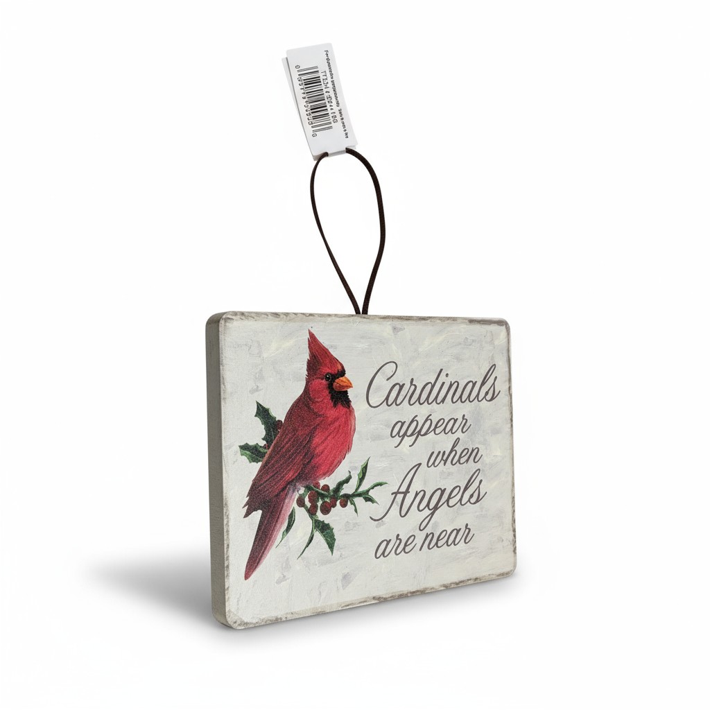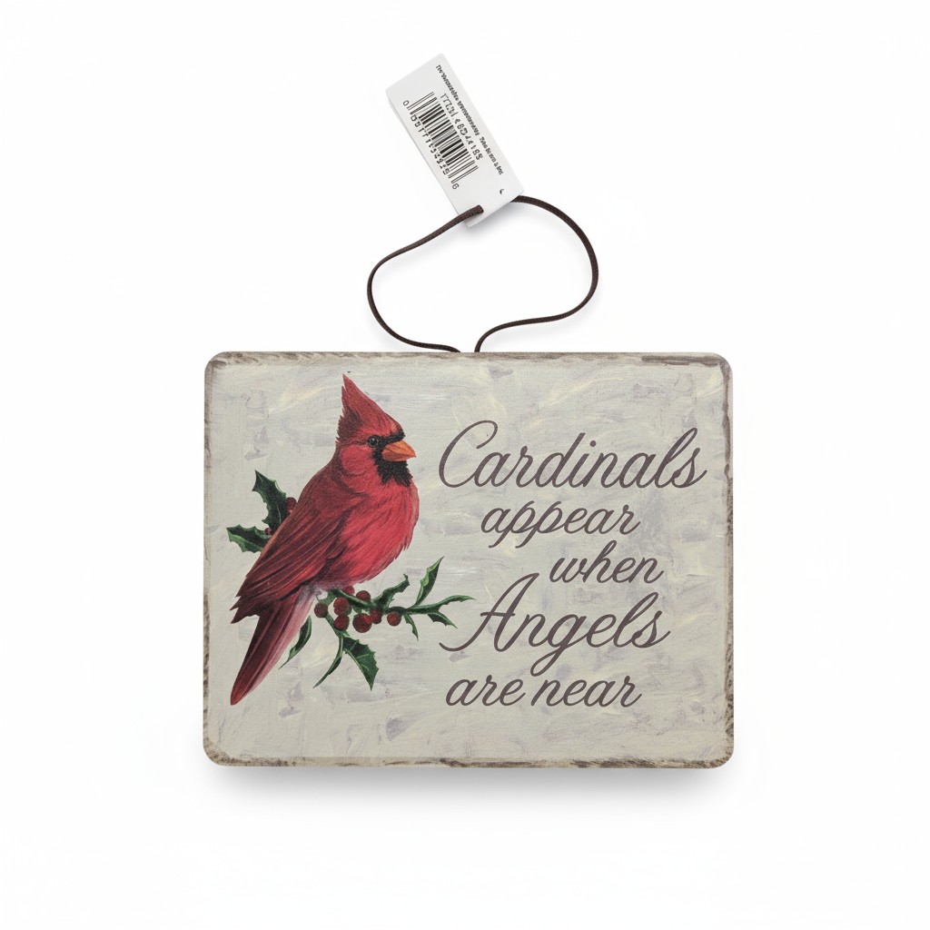 Offer a sign of comfort and eternal love with this small, yet impactful, Cardinal Remembrance Sign. Measuring just 4 by 5 inches, this wooden plaque carries a powerful message of hope and connection: 'Cardinals appear when Angels are near.'