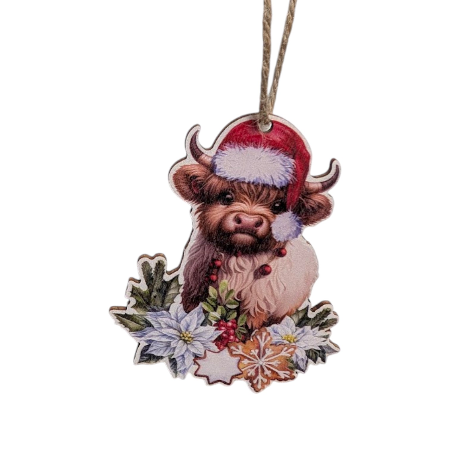 Bring a splash of rustic charm and holiday cheer to your Christmas tree with one of these adorable Highland Cow ornaments! Each unique piece is beautifully designed, perfect for cow lovers and adding a festive touch to any space. Remember, you are purchasing one ornament of your choice.
