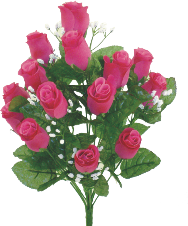 The Lillian Rose Bud Bush has 14 luxurious blooms in the just-opening stage. The colorfast fabric is made to retain it's color, even outdoors, making these beautiful roses a very popular and versatile option.