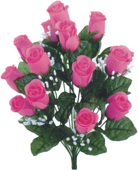 The Lillian Rose Bud Bush has 14 luxurious blooms in the just-opening stage. The colorfast fabric is made to retain it's color, even outdoors, making these beautiful roses a very popular and versatile option.