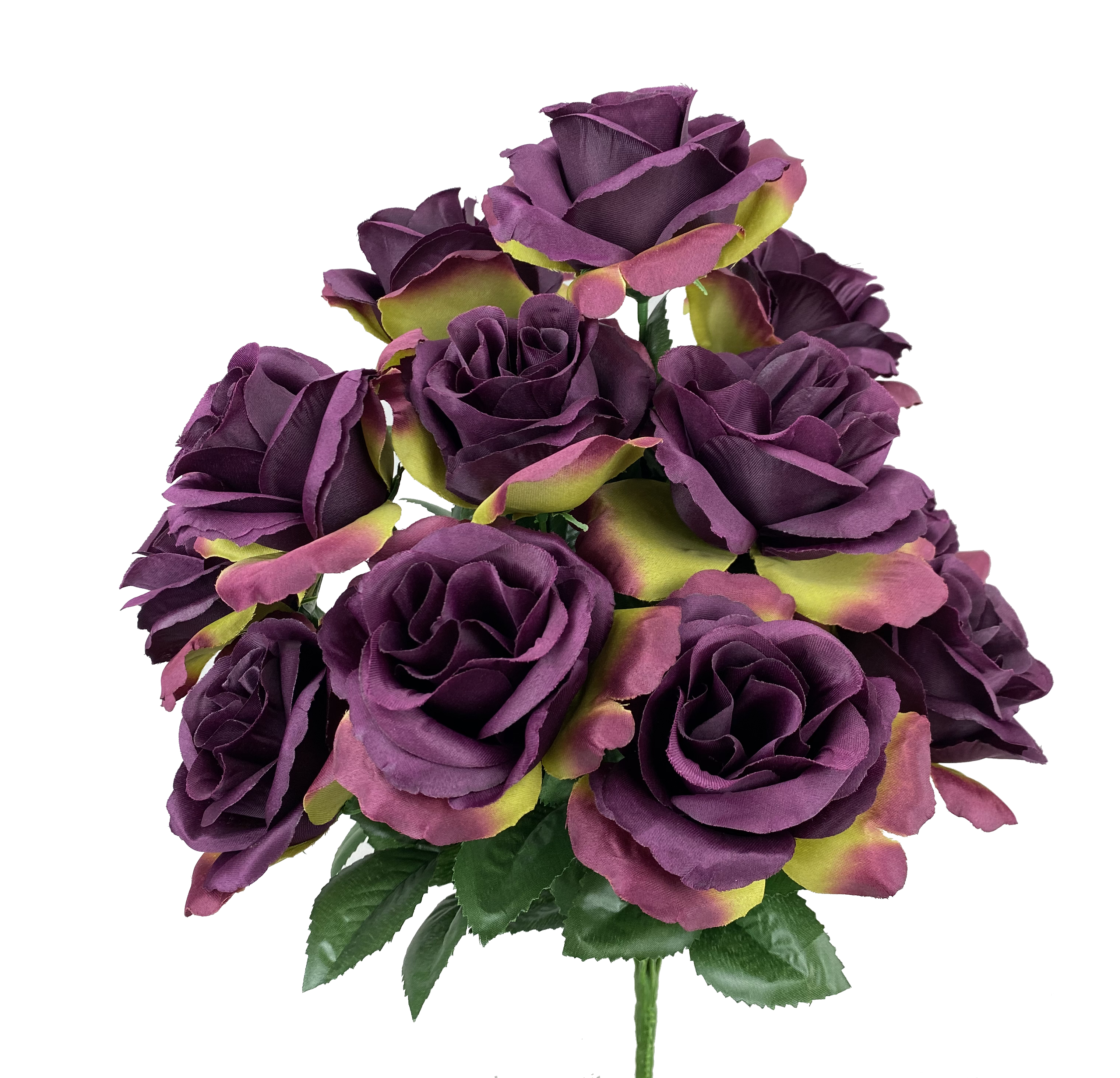 The Lillian Open Rose Bush has 12 luxurious blooms in their fully open stage. The colorfast fabric is made to retain it's color, even outdoors, making these beautiful roses a very popular and versatile option.