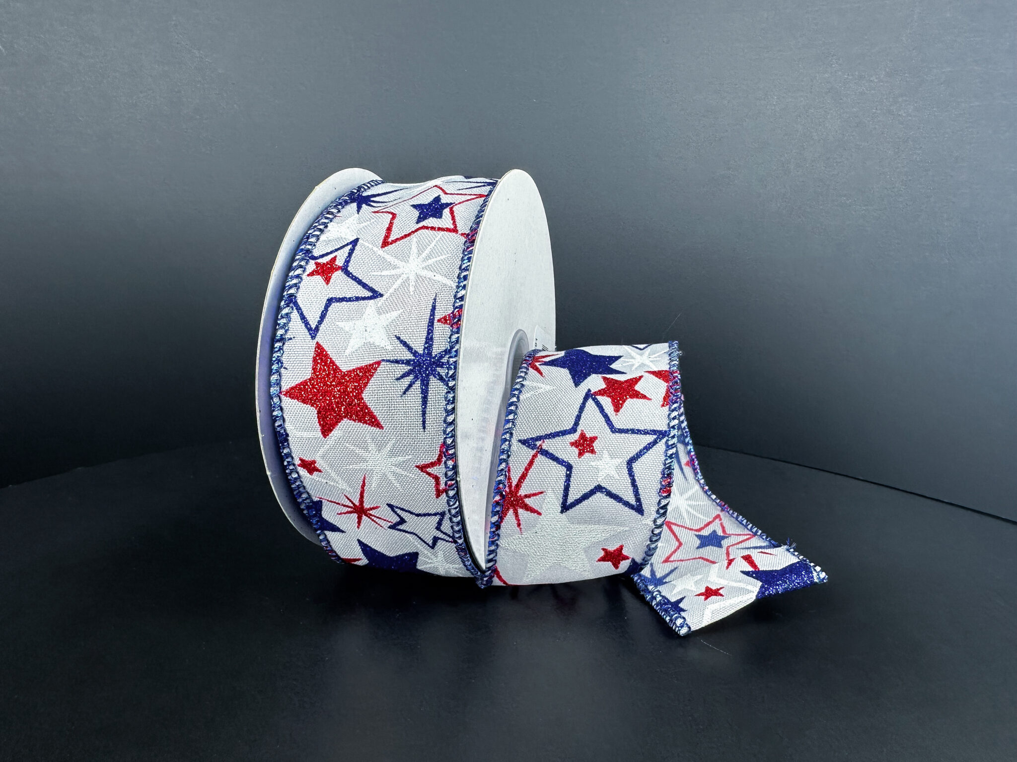 Suggested Uses: This spirited ribbon is ideal for accenting smaller wreaths, creating festive hair bows for parades, or adding a sparkling touch to 4th of July party favors.