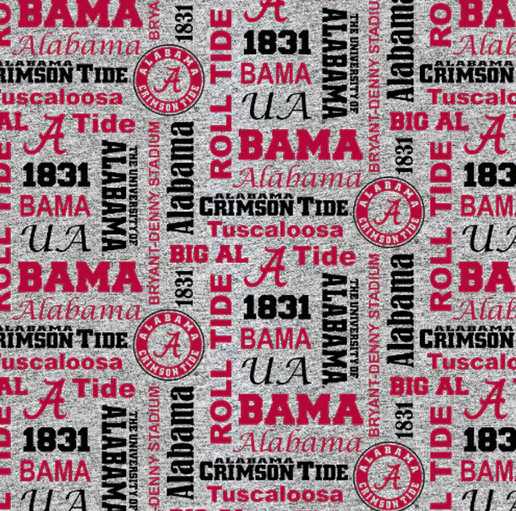 University of Alabama Heather Verbiage Fleece 58” – Crimson Tide NCAA College Fabric by Sykel