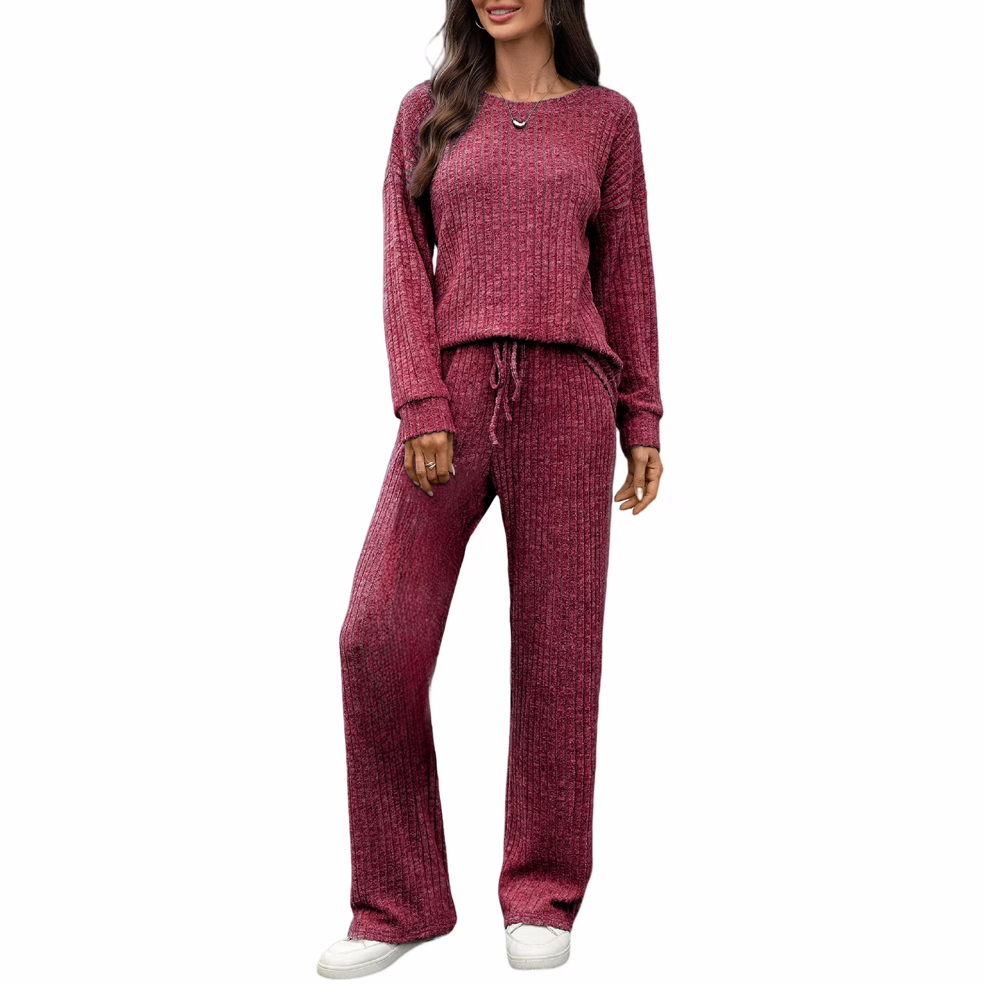 Step into effortless comfort and style with our two-piece Ribbed Knit Lounge Set. Sold as separate pieces, this matching pullover and pant duo is made from an ultra-soft Rayon-Blend knit that offers comfort without feeling bulky. It’s the perfect elevated athleisure look for travel, work-from-home days, or casual weekends.