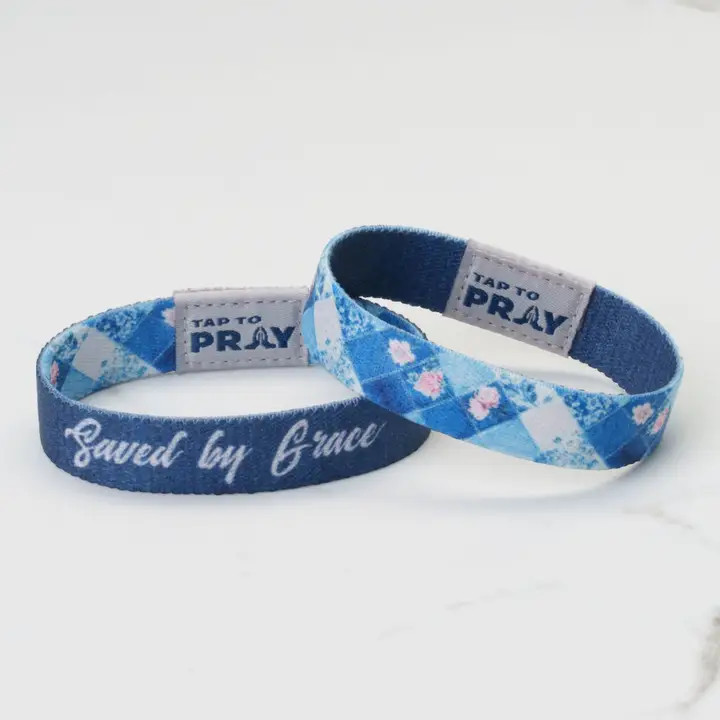 You will absolutely love the new line of interactive Tap To Pray™ Bible verse bracelets. No app required, just tap the patch with your smartphone to receive a new Bible verse and prayer every day (if they don't work right away just hold your phone in place a few seconds longer!). We've also added the ability for you to receive a new verse and prayer anytime you want, simply hit the "New Verse" link on the bottom of the page! Tap To Pray™ works with most smartphones. Our interactive bracelets are soft, stretchy, reversible and waterproof! With two reversible patterns on each bracelet and 5 sizes to choose from, it's easy to find a Tap To Pray™ wristband that's right for you!