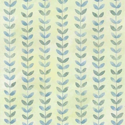 Add a calming, organic rhythm to your projects with this Watercolor Leaf Vine Stripe fabric by Susan Winget. This premium 100% cotton print features delicate vertical stripes composed of small, overlapping watercolor leaves in soft, muted shades of blue and gray-green. The stripes are set against a subtle light green-yellow mottled background, giving the entire design a gentle, painted texture. With a 44/45" width, this fabric is perfect for sashing, borders, apparel, or adding gentle movement to any quilting project in this nature collection.